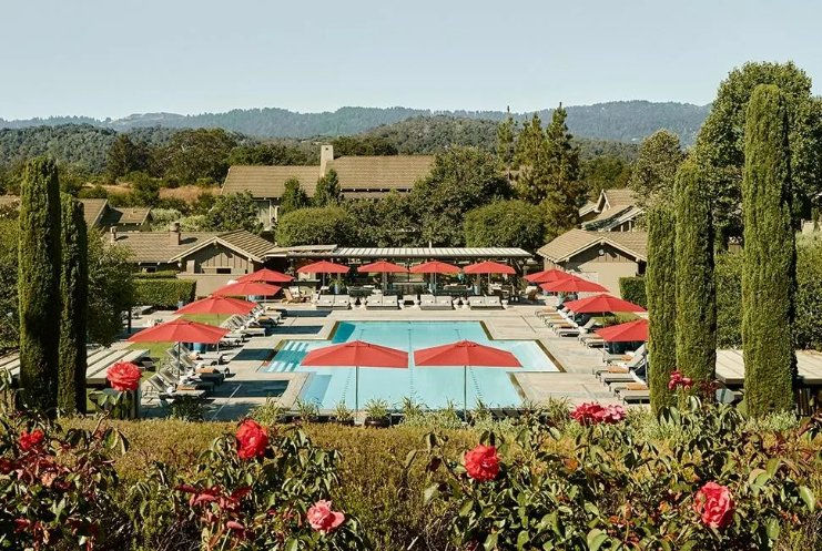 A estadia encontra seu ponto mais emblemático no Rosewood Sand Hill, um refúgio discreto em meio aos campus corporativos que definem a região. Distribuído em uma área extensa e cuidadosamente paisagística, o hotel se apresenta como um contraponto à intensidade tecnológica ao redor. Oliveiras centenárias, jardins amplos e uma piscina que se torna ponto de encontro nos dias mais quentes compõem um cenário onde o luxo se expressa de forma natural.
