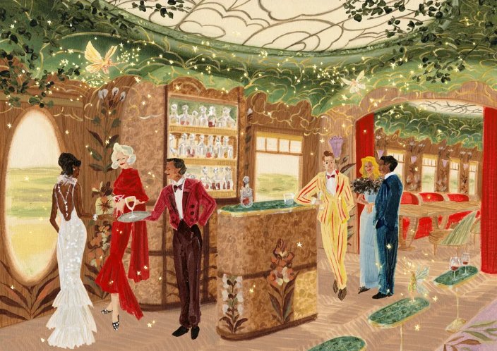 Na narrativa imaginada por Luhrmann, Celia seria uma atriz estrelando uma montagem de A Midsummer Night’s Dream. Seu amante americano, generoso e extravagante, decide presenteá-la com um vagão de jantar e bar extraordinariamente sofisticado, repleto de recantos secretos e detalhes surpreendentes. Essa história ficcional orienta toda a atmosfera do espaço.