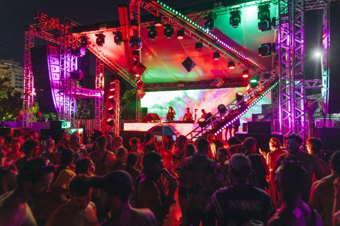 A estética da festa acompanhou essa construção de identidade. Elementos visuais inspirados no imaginário carnavalesco, como plumagens e cores saturadas, dialogaram com uma linguagem contemporânea, criando um ambiente que se distancia tanto do club tradicional quanto do bloco de rua. O resultado foi uma ocupação urbana que ressignifica o espaço público, aproximando o Rio de Janeiro de modelos internacionais de festivais eletrônicos ao ar livre, sem abrir mão do seu contexto cultural.