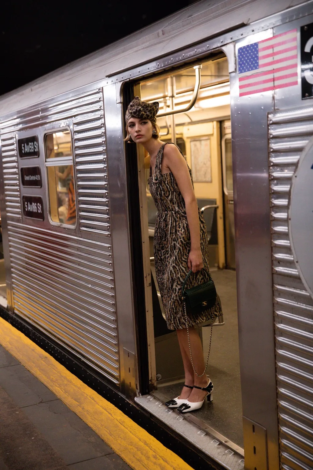 A escolha da estação Bowery como cenário renovou a discussão sobre como a moda ocupa espaços públicos. O ambiente foi cuidadosamente restaurado para o desfile, limpo da rotina áspera do metrô, mas preservando sua arquitetura original. A chegada de um trem deu início à apresentação, enquanto as modelos surgiam como se fossem personagens reais, capturadas entre deslocamentos, compromissos, festas e instantes de anonimato. Margaret Qualley e A$AP Rocky assistiram à cena após participarem do curta-metragem dirigido por Michel Gondry para o teaser da coleção, no qual interpretam amantes nova-iorquinos vivendo episódios surreais pela cidade.