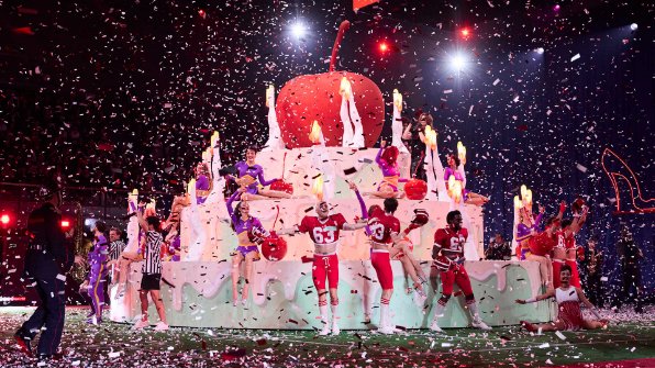 A narrativa se desenvolveu como um tableau vívido em que dançarinos encenaram partidas de futebol americano com intensidade dramática, enquanto uma performance musical ao vivo acrescentava ritmo e teatralidade. O grande final reuniu todos os elementos em uma explosão festiva, capturando a essência da celebração coletiva e do triunfo.