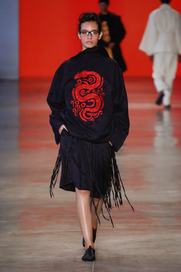 Filho de um faixa preta e batizado em homenagem a Bruce Lee, David carrega no próprio nome a fusão de culturas que também define seu trabalho. As referências orientais aparecem nas silhuetas amplas, nas amarrações e nos quimonos reinterpretados, compondo uma alfaiataria de espírito esportivo e urbano. A coleção resgata a disciplina e a fluidez do movimento das lutas, convertendo-as em linguagem de moda.