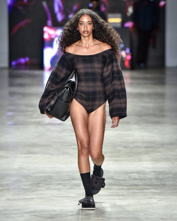 O artesanato, pilar recorrente no trabalho da Dendezeiro, apareceu em novas bolsas de miçangas criadas em parceria com o Ateliê Masanga, reafirmando o fazer manual como ato de resistência cultural. A força colaborativa da marca também se refletiu nos apoios de Jordan, Magnum e Kenner. Um dos momentos mais marcantes foi o lançamento mundial de um tênis inédito da Jordan, apresentado pela primeira vez na passarela da grife baiana, um gesto simbólico que uniu a moda brasileira à cultura global.