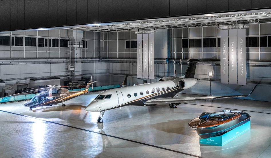 A novidade foi apresentada em um evento exclusivo realizado no aeroporto Milano Prime Linate, em Milão. Para revelar o conceito, a Flexjet e o Ferretti Group criaram uma instalação cuidadosamente coreografada que reuniu três máquinas emblemáticas do luxo contemporâneo: um Gulfstream G650 da Flexjet, um helicóptero Sikorsky S-76 e um Aquariva Special da Riva. A cena sintetizava o encontro entre duas culturas de design profundamente enraizadas na tradição italiana e na engenharia de alta performance.