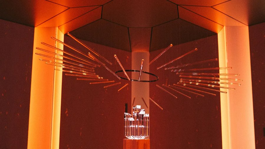 A exposição culmina em The Alchemy of the Senses, uma homenagem ao lendário Baccarat Rouge 540, talvez sua criação mais célebre. No centro da sala, uma escultura de cristal Baccarat é envolta por uma coreografia de luzes que evocam o fogo das fornalhas da cristaleria. A experiência é acompanhada por um chocolate criado pela chef Anne-Sophie Pic, ampliando o diálogo entre aroma, visão e paladar.