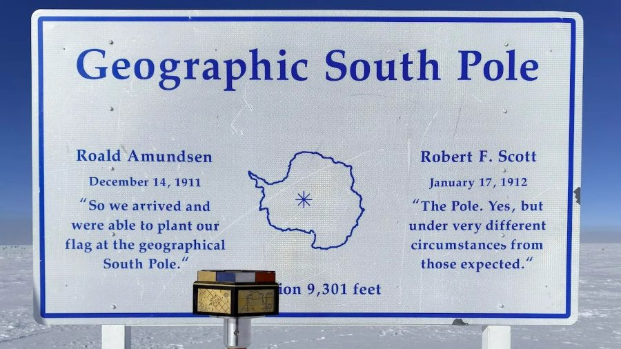 Estar diante desse marco simbólico significa pisar no mesmo ponto que mobilizou algumas das expedições mais dramáticas da história. Uma placa recorda as palavras deixadas pelos dois exploradores que disputaram a chegada ao polo.