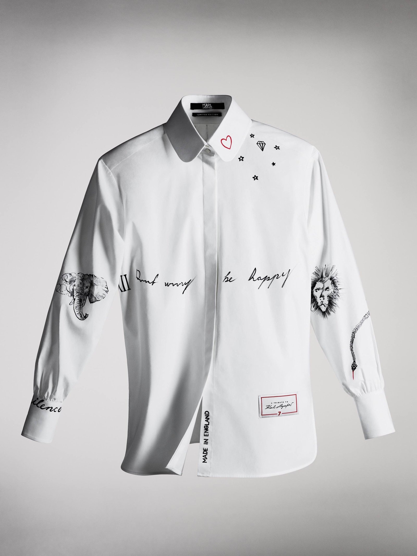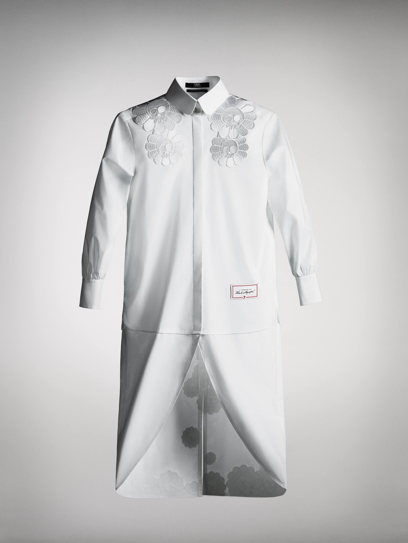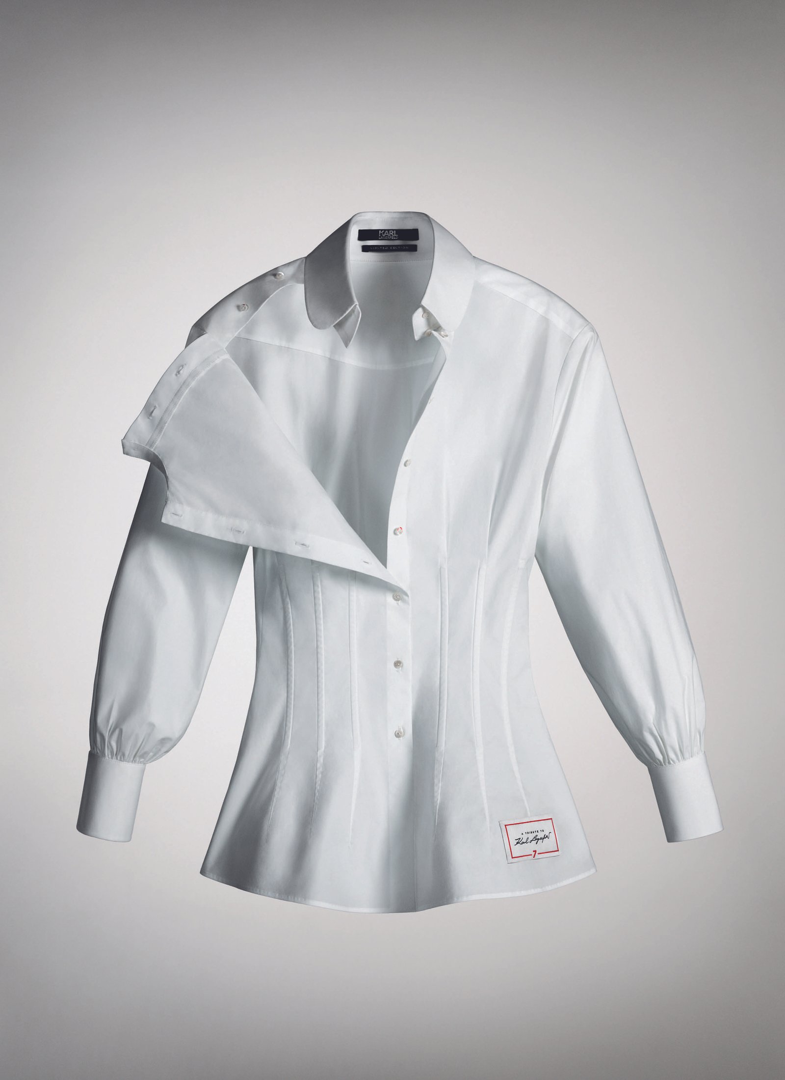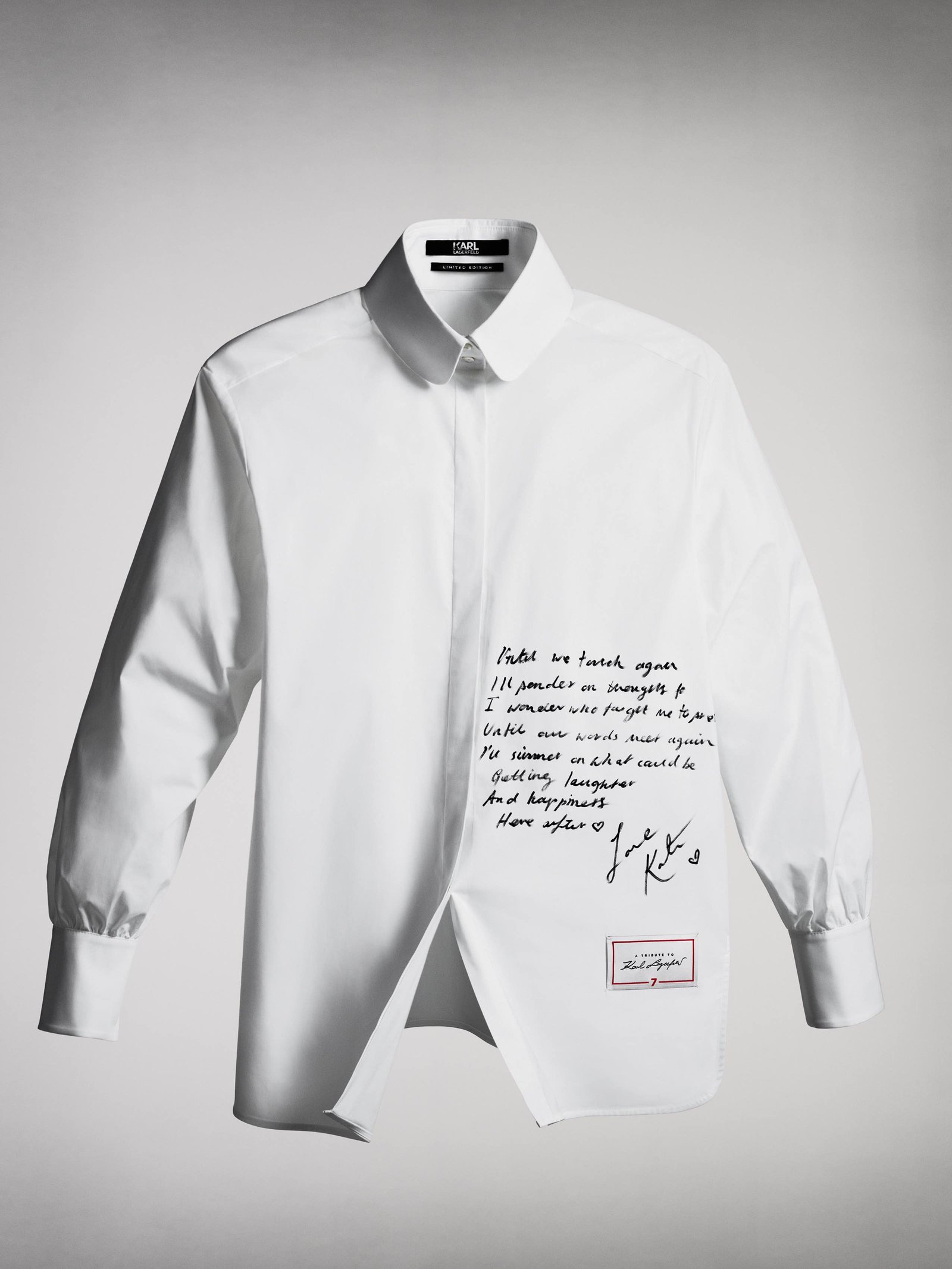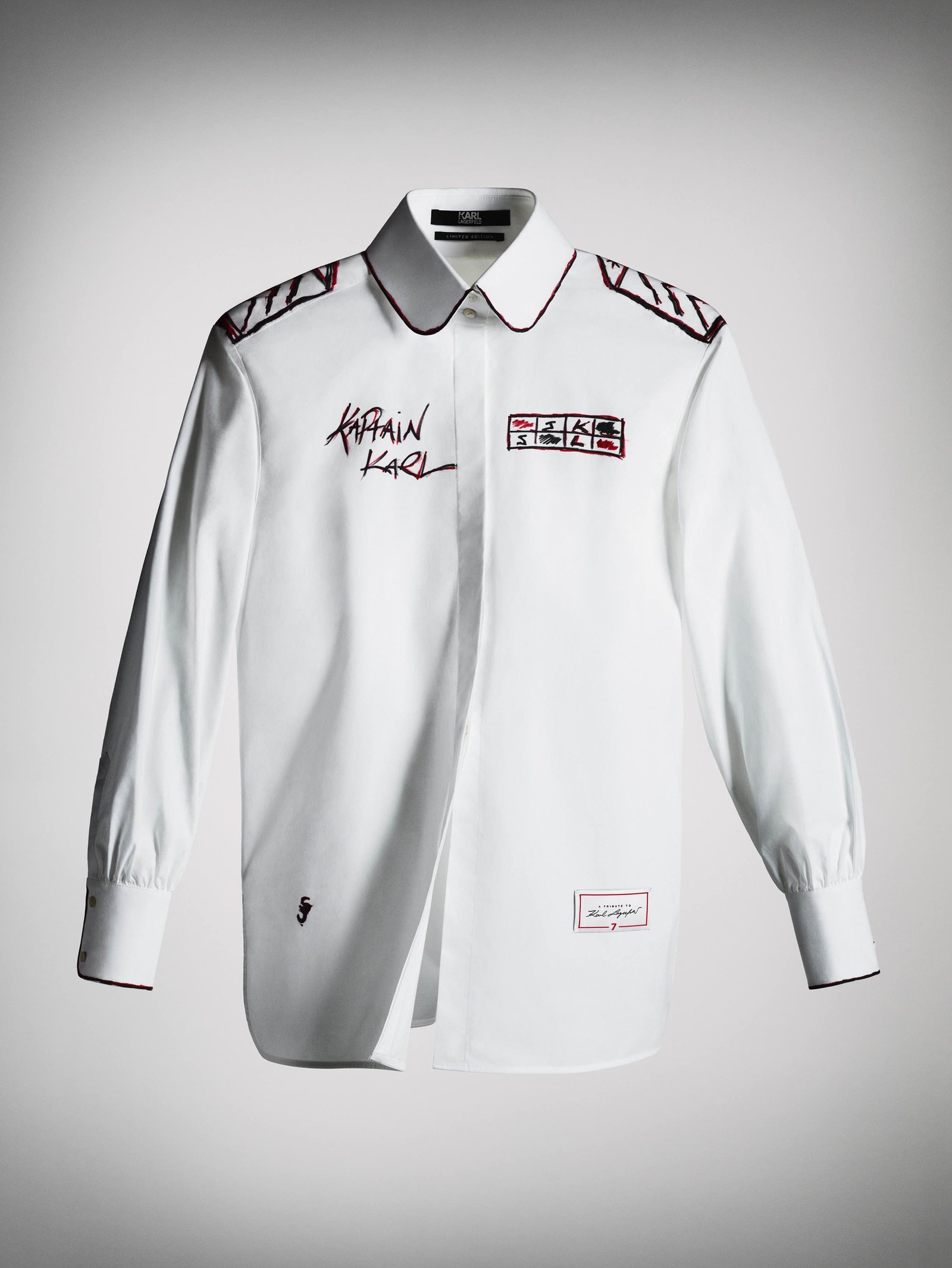 Sete dos modelos finais serão replicados 77 vezes cada e serão comercializadas a 777 euros com venda exclusiva no Brasil na FARFETCH a partir do dia 26 de setembro, toda a renda será revertida para a caridade. O número 7 foi escolhido pois era o número da sorte de Karl e representava diversos elementos em sua vida: sua rua favorita em Paris (a 7th) e o nome da sua livraria e editora (7L). Toda a renda obtida com a venda das camisas será doada para o programa “Sauver la Vie”, que financia pesquisas médicas na Universidade Paris Descartes e que Karl contribuiu por muitos anos.