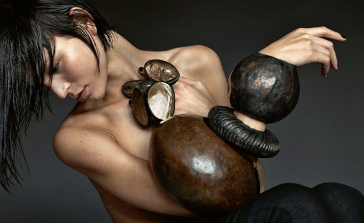Entre os destaques modernos, aparecem as correntes de argilito de Joe Sheehan e os colares de John Moore, feitos com Morphit, um material inovador que combina argila e papel reciclado, evidenciando uma nova geração de artistas que unem sustentabilidade e estética. O livro também reserva espaço a criadores que transitaram entre as artes plásticas e a joalheria, como Louise Bourgeois e Salvador Dalí, demonstrando como o gesto artístico pode ser traduzido em metal, pedra e forma.
