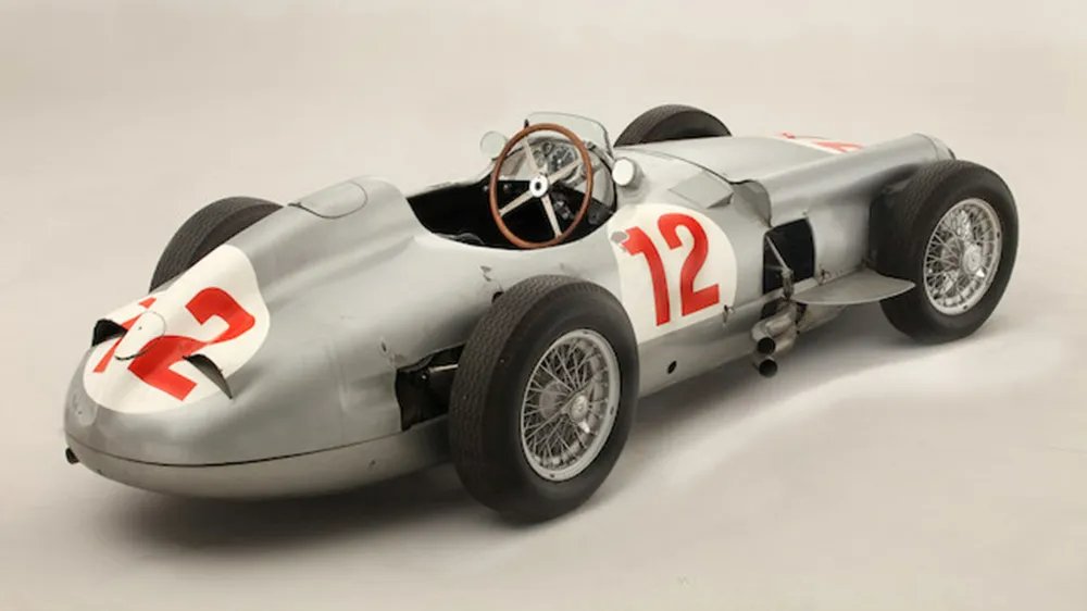 Com carroceria aerodinâmica rara e histórico nas mãos de Fangio e Stirling Moss, este Silver Arrow representa o auge tecnológico da Fórmula 1 dos anos 1950. Seu valor chegou a cerca de R$ 275 milhões.
