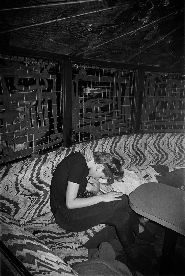 Ridgers fotografava em um tempo em que sair à noite significava, muitas vezes, buscar encontros sem roteiro. Beijava-se alguém que talvez nunca mais fosse visto, ou mais de uma pessoa na mesma noite, não por performance, mas por curiosidade, por impulso, por experimentação. O beijo era parte do processo de descoberta, um gesto quase iniciático da vida adulta. Não havia filtros, registros imediatos ou a consciência constante de estar sendo observado.