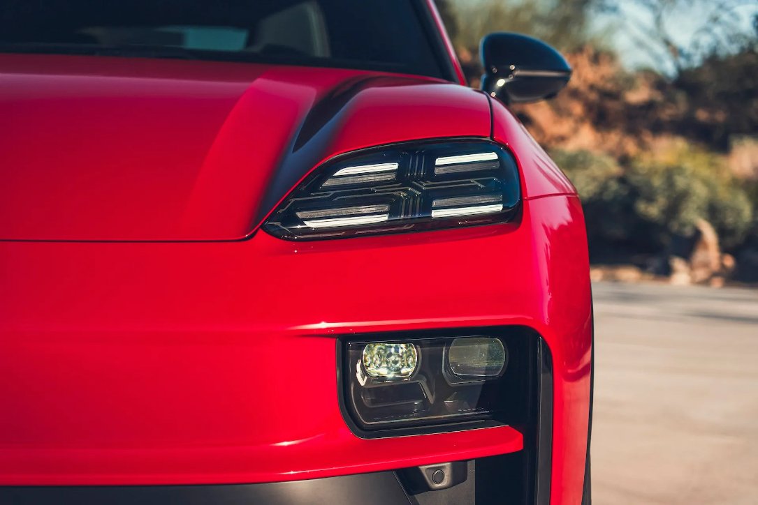 O Macan GTS também estreia uma atualização visual que será gradualmente aplicada a toda a família Macan Electric ao longo do ano. As mudanças se concentram nas áreas frontal e traseira, criando uma presença mais assertiva. Para identificar o GTS com facilidade, basta observar os detalhes em preto nas portas e nos retrovisores, elementos exclusivos da versão. No exemplar testado, pintado no vibrante tom Carmine Red, essas escolhas estéticas reforçam a identidade esportiva do modelo e atraem olhares com naturalidade.