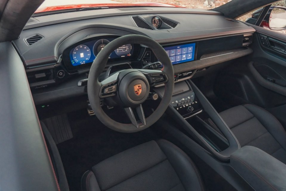 Embora o Turbo permaneça como o modelo mais potente da gama, o GTS possui uma distinção técnica interessante. Ele apresenta o centro de gravidade mais baixo entre todos os Macan Electric. A diferença é de aproximadamente meio polegada em relação ao Turbo, um detalhe que pode parecer pequeno, mas que influencia diretamente a dinâmica. A física automotiva valoriza cada milímetro, e essa característica confere ao GTS uma postura mais agressiva e estável.