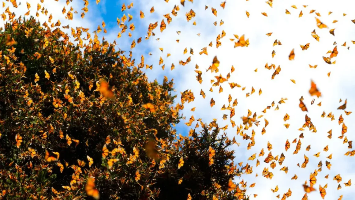 No México, a Reserva da Biosfera da Borboleta Monarca, reconhecida pela UNESCO, recebe milhões de borboletas que viajam do Canadá e dos Estados Unidos até os bosques de Michoacán. Entre novembro e março, o cenário transforma-se em um reino vibrante e etéreo, com galhos inteiramente cobertos por asas alaranjadas.