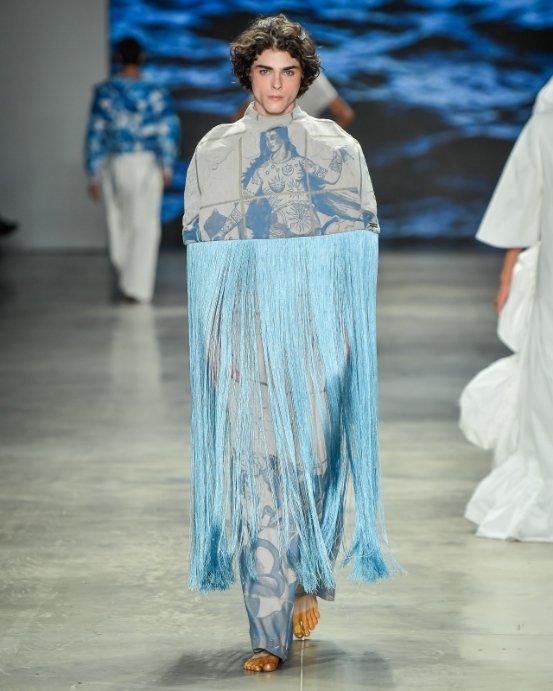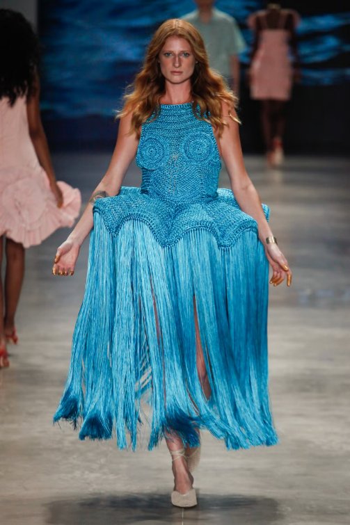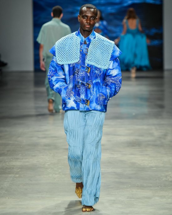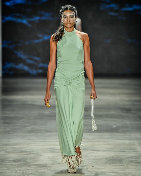Em sua oitava travessia no SPFW, a Santa Resistência reafirma sua vocação para o diálogo entre arte, ancestralidade e moda. Mônica Sampaio define as mulheres que inspiraram esta coleção como “mulheres-oceanos”, aquelas que habitam e são habitadas pelas águas, que resistem e se transformam sem perder a própria essência. O resultado é uma coleção que não apenas homenageia o feminino, mas o traduz em movimento, textura e cor, como um mergulho sensorial na força do mar.