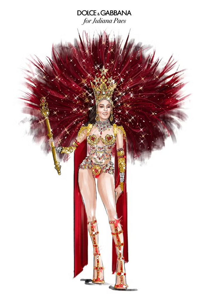 O desenvolvimento do figurino começou ainda em 2025, dentro dos ateliês da maison, sob a direção criativa de Domenico Dolce e Stefano Gabbana. Ao longo de 250 horas de trabalho manual, 13 artesãos dedicaram-se à construção de cada componente, seguindo os princípios que definem as criações de Alta Moda da casa. O processo envolveu uma investigação cuidadosa sobre o enredo da escola, que homenageou Mestre Ciça, figura central na história da bateria da Viradouro, e também sobre a presença cênica de Juliana, cuja imagem já faz parte do imaginário contemporâneo do Carnaval carioca.