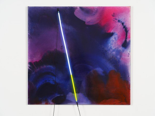 Um dos momentos mais marcantes está na presença da pintora norte-americana Mary Weatherford, que estreia no Brasil com trabalhos que incorporam tubos de neon à tela. A luz não aparece como recurso externo, mas como parte estrutural da pintura, criando superfícies vibrantes que alteram a percepção do espaço e conduzem o olhar de maneira quase cinematográfica.
