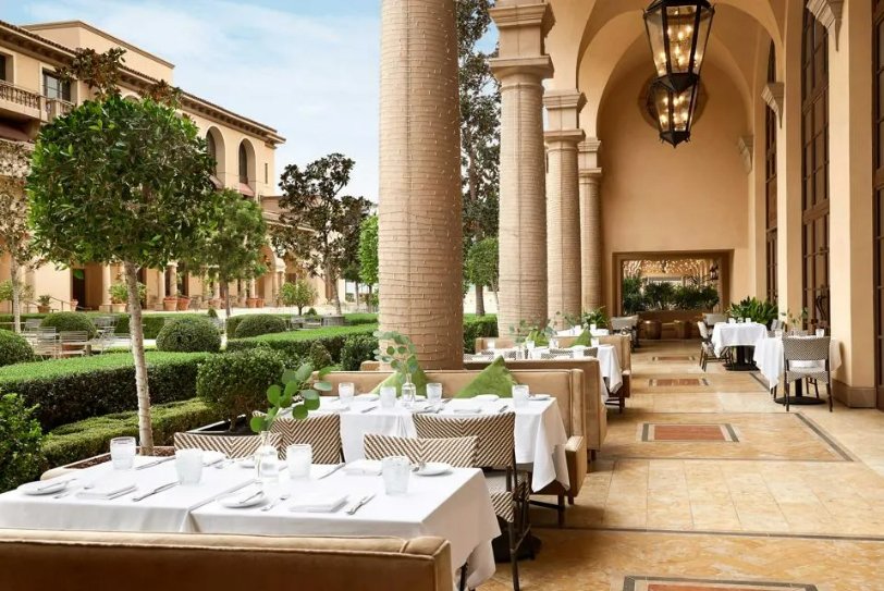 A gastronomia, como em todos os hotéis do grupo, é uma celebração da arte de viver. O The Terrace serve café da manhã e almoço com vista para os jardins de Beverly Cañon, entre palmeiras e fontes. O menu, elaborado com ingredientes locais e sazonais, reflete o estilo “farm-to-table” da Califórnia, com toques de sofisticação europeia. Avocado toast, panquecas de buttermilk e cappuccinos cremosos compõem as manhãs ensolaradas, enquanto à noite, o ambiente ganha luzes suaves e clima de jantar romântico.