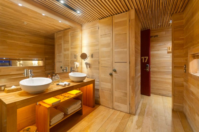 Cada saída é cuidadosamente apoiada por uma logística impecável. Almoços preparados para serem apreciados em meio à paisagem, vinhos, água, equipamentos e pequenos detalhes pensados com antecedência garantem conforto mesmo nos ambientes mais remotos. Ao retornar, o spa Uma oferece um contraponto perfeito à intensidade das atividades externas. A piscina interna aquecida com borda infinita, voltada para o lago, as saunas, as salas de tratamento e o jacuzzi exterior criam um espaço dedicado ao relaxamento profundo, sempre acompanhado pelo cenário patagônico.