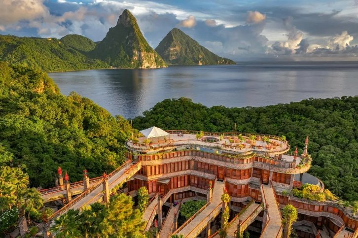 Onde ficar: O icônico Jade Mountain é uma obra de arte suspensa sobre o mar, com 24 suítes que abrem inteiramente para o horizonte e piscinas infinitas privativas.